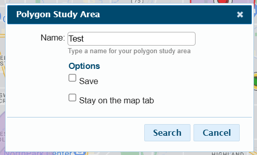 Profile the demographics of a custom area of interest. Creating a Polygon Study Area Choosing the Site First navigate to the desired area on the map, using the search bar at the top or by zooming and panning to the desired area. Select the Polygon ...