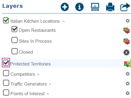 On the layers panel, turn on any polygon layer in your mapset so it’s visible on the map.