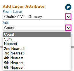 - There are three options in the Add dropdown menu: Count, Nearest, or Sum.