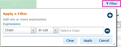 - Setting a Filter: If you want to filter the layer to only include specific locations, select the Filter button. You can set multiple filters on any field within the layer.