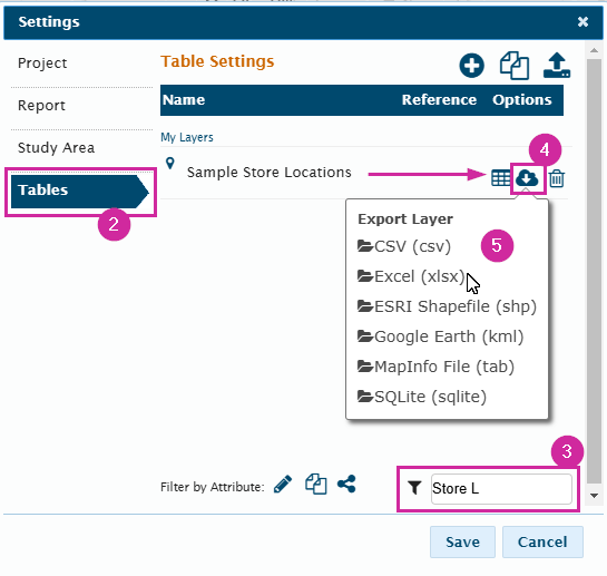 Excel, CSV, ESRI shapefile, Google Earth (kml), MapInfo Tab, and