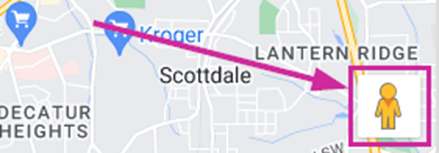 - Next, click on the Google Street view icon at the bottom right corner and drag the icon onto the blue highlighted street you would like to view. When the icon is above the location you would like to view, release the mouse button.