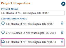 - Opening a past project that includes the study areas you want to analyze. To open a past project, check out Working in the My Projects Tab.
