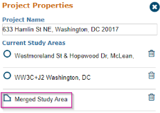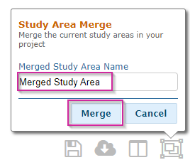 This tool combines two or more study areas to create an additional new study area. This new study area can be seen in the right project properties panel similar to the overlap study area. Before merging, make sure that your current project includes only the study areas you want to merge.