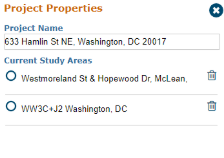 The study area tools are found in the bottom right side of the project properties panel. Below are instructions on how to navigate to this panel: