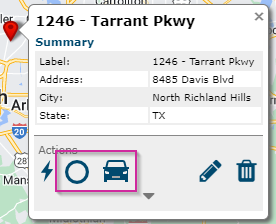 In this section we’ll review how to create study areas for circle, drivetime, and drive distance study areas. The type of study area you are creating will dictate which icon to select. Review the Types of Study Areas section if you are unfamiliar with the different types of study areas. Choosing the Site:
