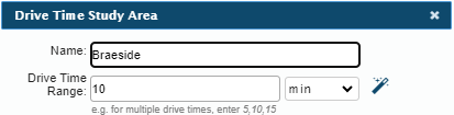 - Name: This will default to the street address or the main field if run from a table. It can be manually changed to make each study area more easily distinguishable.