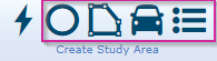 - Select the circle or drive study area icon on the main tool bar at the top of the map tab.