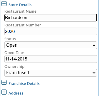 - Dropdown List: This allows you to have multiple standard options for users to choose from, giving you control over the available options and prevents issues with spelling, grammar, etc. A dropdown list might be used for store statuses or owner names, where the same value must be spelled with the correct grammar and case each time.