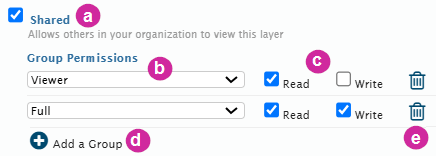 - Click the Shared checkbox. The Group Permissions dropdown appears.