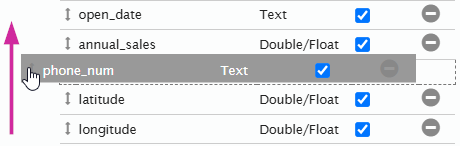 If you need to reorganize the fields, click on a field and drag it to where you want to see it in the table. When users view the data on the map, it will appear in the same order.