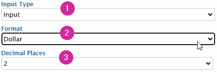 - Use Format dropdown to choose how you'd like the number to appear - Regular Number, Dollar, Percentage, or Unformatted.