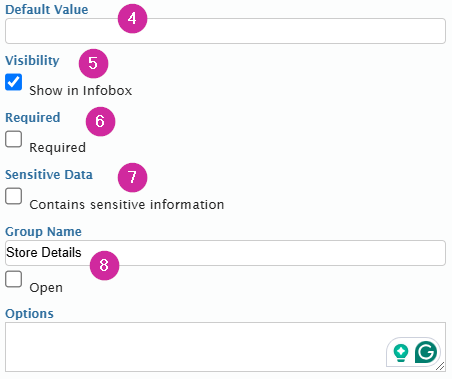 - We recommend using copy/paste to ensure the same group name is used since it is case and character sensitive - i.e. "Store Details" and "Store Details " are different due to the extra space.