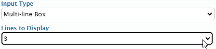 - Multi-Line Box: This is used for free-form, long answer text and allows more information to be input and displayed when viewing the data on the map tab. This is particularly useful for notes or description fields where there there may be more to add than can fit in a single line. Use the Lines to Display dropdown to choose up to 6 lines to display.