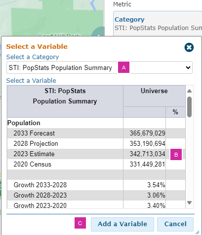 - Select a variable from the category chosen in step 5a.