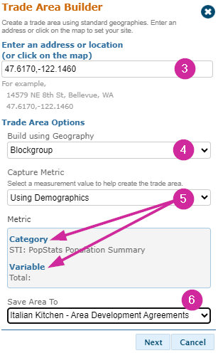 Setting up the Trade Area Builder