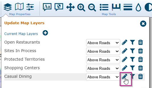 tools section and select the pencil icon for the casual dining layer.