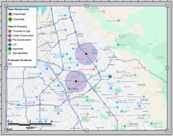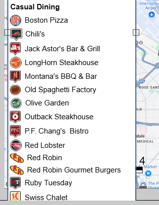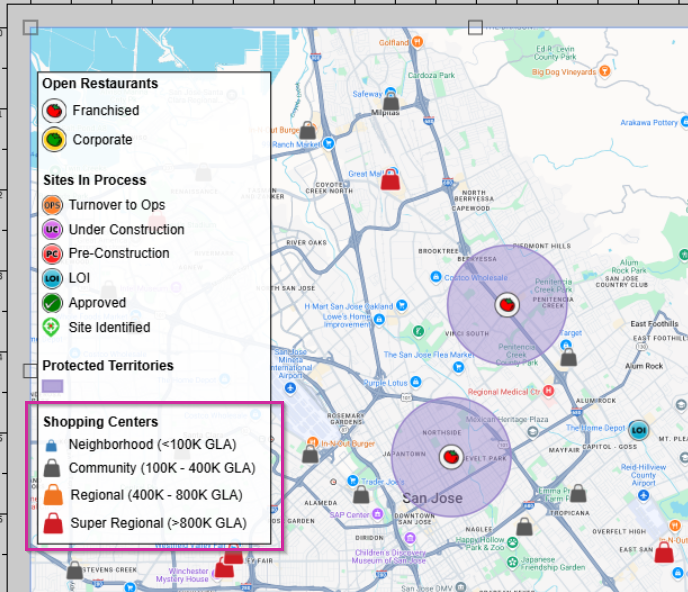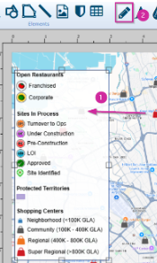 - Here, we have added our casual dining layer to the layout, but there are too many locations displayed in the legend, and not all of them are visible in the layout.