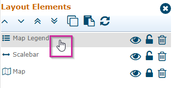 To edit Layout elements such as the scalebar or the legend, you can either click the element itself on the canvas or click the element on the right in the Layout Elements box.