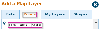 Under “Points”, click the point layer named “FDIC Banks (SOD)”.