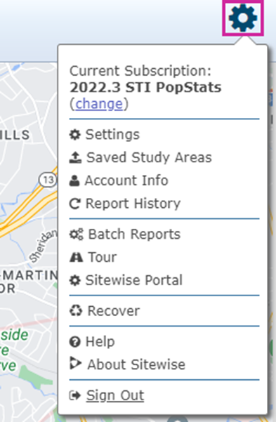 When reviewing data, it is vital to ensure the correct corresponding subscription is used. Therefore, this setting is used to quickly swap between all the database subscriptions an account has. For example, swapping from STI in the US to Environics in Canada to assess the demographics of a site. This selection must be done prior to creating the relevant study areas to ensure the profile tab populates accurately. Find more information about changing subscriptions